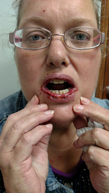 Figure 2. Although this clinical presentation is not indicative of HSV, this autoimmune skin blistering condition was misdiagnosed for it by two physicians Lisa Ann visited.